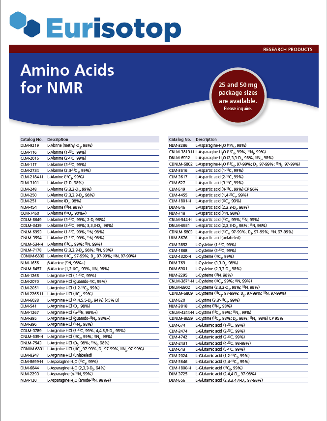 Amino Acid for NMR Document category: Biomolecular NMRDocument type: CatalogDocument Thumbnail: Document file: amino_acid_for_nmr_2017.pdf