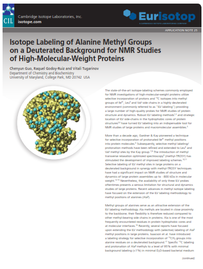 Isotope Labeling of Alanine Methyl Groups on a Deuterated Background for NMR Studies of High-Molecular-Weight Proteins Document category: ProteomicsDocument type: Application NoteDocument Thumbnail: Document file: app_note_25.pdf