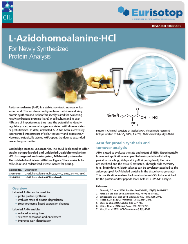 L-Azidohomoalanine·HCl | For Newly Synthesized Protein Analysis Document category: ProteomicsDocument type: Technical Product InformationDocument Thumbnail: Document file: prt_aha_azidohomoalanine1_2017.pdf
