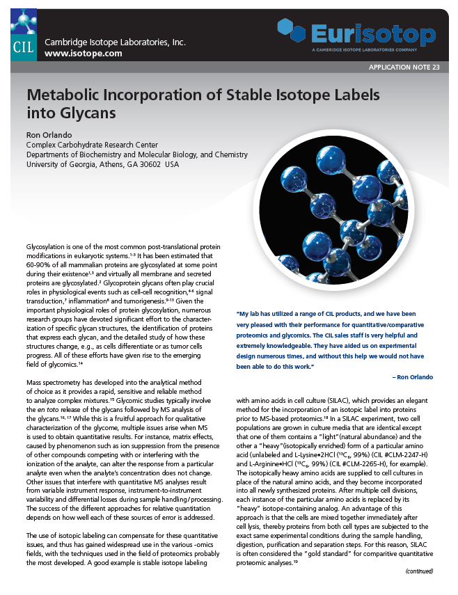 Metabolic Incorporation of Stable Isotope Labels into Glycans Document category: GlycomicsDocument type: Application NoteDocument Thumbnail: Document file: metabolic_incorporation_of_stable_isotope_labels_into_glycans.pdf