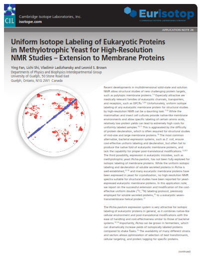 Uniform Isotope Labeling of Eukaryotic Proteins in Methylotrophic Yeast for High-Resolution NMR Studies – Extension to Membrane Proteins Document category: ProteomicsDocument type: Application NoteDocument Thumbnail: Document file: app_note_26.pdf